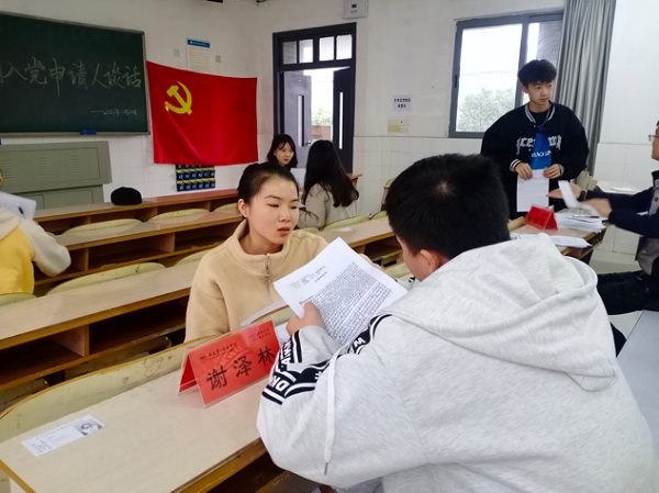 为进一步加强我院对入党申请人的管理和培养,帮助其提高对党的认识、端正入党动机,11月20日下午,我院学生第一党支部支委同26名入党申请人进行了一对一的谈话。