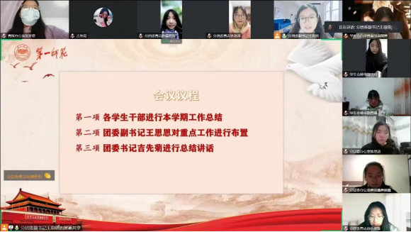 12月30日晚上,我院在线上召开以“踔厉奋发担使命,尽锐出战续新篇”为主题的2022-2023学年第一学期团学青第二次例会。伟的国际1946bv团委书记吉先菊、团委副书记王思思及全体团学青学生干部参与本次会议。会议由团委副书记王思思主持。