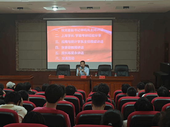 为激发学生考研热情,近日,我院联动东方红校区和城南书院校区举办考研动员会。围绕经验分享、形势分析、数据解读与动员鼓励展开,为考研学子指明正确的备考方向。会议由我院党委副书记申鸣凤主持,院长陈爱永、优秀考研导师张更容、应用统计系主任颜斌、考研专干陈晓娇、带班辅导员毕倩、罗庆红参加动员会。