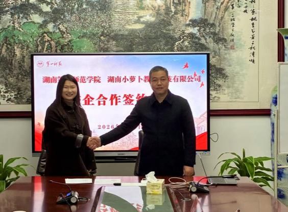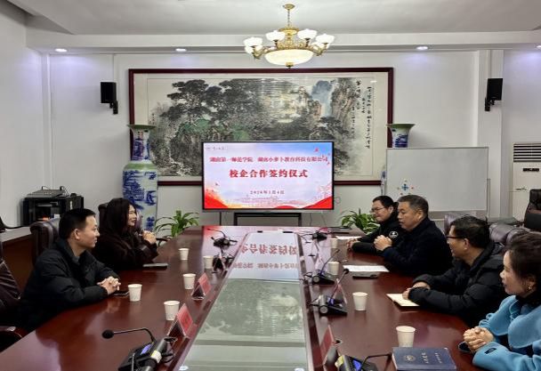 2026年1月4日,我院与湖南小萝卜教育科技有限公司实习协议签约仪式在学院会议室隆重举行。我院院长陈爱永主持仪式,学院全体领导班子成员出席活动。湖南小萝卜教育科技有限公司执行总校长何蓓、教学总校长任学军、人事总监彭晓倩作为企业代表莅临学院。双方就深化产学合作、协同育人、共建实习实践基地等事宜进行了深入交流并达成共识,顺利签署合作协议。