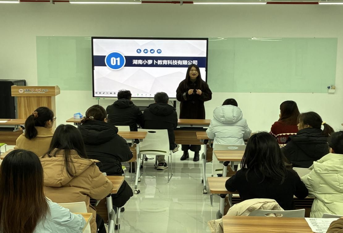 签约仪式结束后,湖南小萝卜教育科技有限公司面向我院2026届毕业生举办了一场专场招聘宣讲会。公司代表详细介绍了企业发展前景、2026年度招聘岗位、薪资福利、晋升体系及企业文化,并就毕业生关心的问题进行了现场解答,气氛热烈。