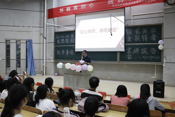 为贯彻落实立德树人根本任务,深化资助育人功效,以丰富多彩的形式庆祝中国共产党建党100周年,5月11日,我院在怀中南110举行“红心向党,感恩资助”国家奖学金获得者优秀事迹报告会,学院领导、全体辅导员、教师代表及300余名学生参加了此次报告会。