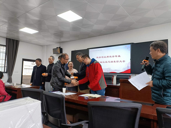 为总结认证经验,部署改进工作,表彰先进,凝聚人心,11月9日14时,伟的国际1946bv在玉衡北305室召开数学与应用数学师范类专业认证总结表彰会,学院全体党政领导及教师参会。会议由学院党委书记曾玉华主持。