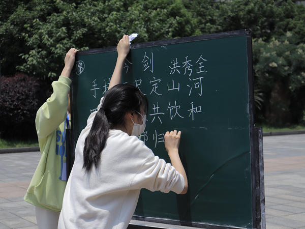 5月16日中午12:30,我院“守教育初心·担育人使命第十届教育节开幕式暨粉笔字决赛于中轴广场成功举行。学院党委书记曾玉华、常务副院长李雅湘、党委副书记李静、副院长王增赟、学工办主任马青梅、团委书记吉先菊、学工办老师陈晓娇、康丽洁、毕倩、袁伟杰及学生代表,共计一百余人参与本次活动。