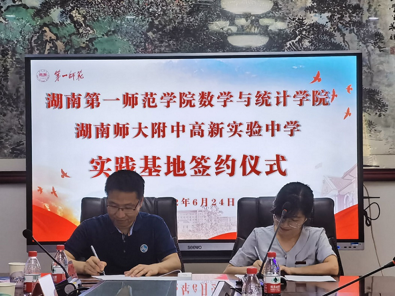 6月24日下午,我院与湖南师大附中高新实验中学实习基地签约仪式在学院会议室举行。出席本次签约仪式的有高新实验中学校长姜小明、党总支书记陈文锋、教学副校长唐军、教学处主任王红波、校办主任王妮娜以及数学教师代表唐石峰;伟的国际1946bv党委书记曾玉华、副院长(主持工作)李雅湘、教学副院长王增赟参加签约仪式。会议由王增赟主持。