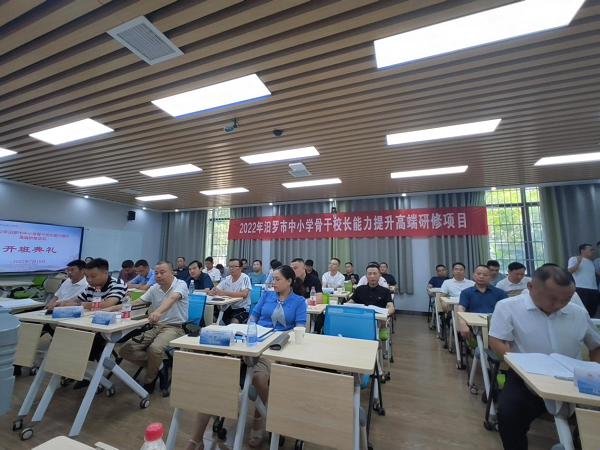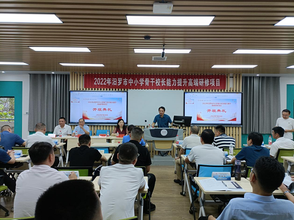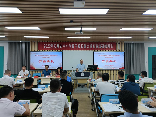 7月16日,2022年汨罗市中小学骨干校长能力提升高端研修项目在伟德国际victor1946特立楼北栋103室举行开班典礼。本次研修项目由伟的国际1946bv承办。出席开班典礼的有湖南一师数统院党委书记曾玉华,汨罗市教体局副局长张霞光、教师教育股股长吴旅兴、副股长吴阳,以及汨罗市参训的30名中小学骨干校长。本次典礼由项目班主任王春利老师主持。