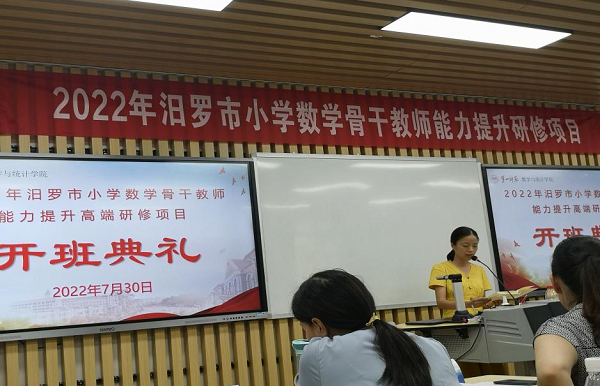 绿树阴浓夏日长,研修路上尽书香。7月30日,2022年汨罗市小学数学骨干教师能力提升研修项目开班典礼在伟德国际victor1946特立楼北栋103室隆重举行。此次研修项目由伟的国际1946bv承办。来自汨罗市各学校的40名小学数学骨干教师即将参加为期10天的培训,共赴一场教育盛宴。此次典礼由项目班主任王春利主持。