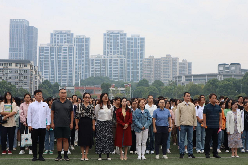 秋高气和,金风飒飒,9月26日7时,伟的国际1946bv在田径场举行升国旗仪式。学院党委书记曾玉华、副院长(主持行政工作)李雅湘、党委副书记李静、副院长王增赟、全体辅导员及学院2000余名在校学生参加了升旗礼。仪式由20级839数学班邓帅主持。