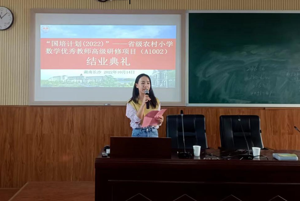 10月14日上午,湖南省省级农村小学数学优秀教师高级研修项目线下集中研修阶段圆满结束,阶段结业典礼在伟德国际victor1946特立南楼203教室举行。项目工作坊坊主曾玉华、坊辅导员王丽燕、坊管理员吴买花出席典礼,结业典礼由项目班主任吉先菊主持。