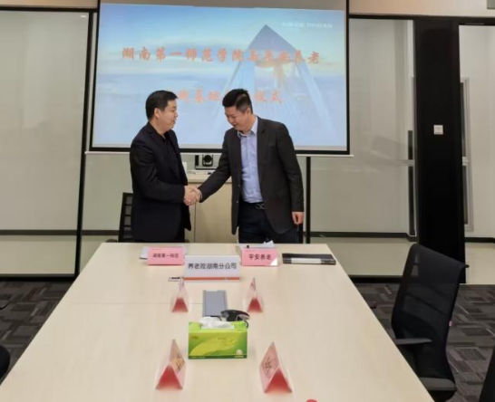 仪式开始前,伍少奇介绍了公司的发展历程、经营管理模式、企业文化及取得的业界成绩。他指出,近年来,中国平安养老保险有限公司积极服务社会,不断加强校企合作,促进校企共赢,共同培养社会所需的各类人才。他表示,中国平安养老保险有限公司期待与历史悠久、红色文化底蕴深厚的主席母校开展合作,联合在人才培养、师资互聘、项目合作、科技成果转化等领域实现合作共赢。