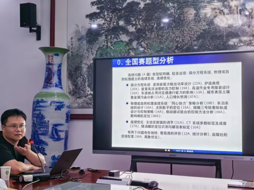 王丹教授首先讲解了历届数学建模真题的分布领域和特点,指出“优化问题”和“微分方程”是数学建模的两个重点命题领域。其次,以2021年数模真题“Fast”为了,详细讲述了该题命题背景、意图、应避免的“坑”、无效假设、解题思路以及模型结果等数学建模全套流程。最后,王教授从建模团队、模型学习、计算提升和实践训练四个方面对我院数学建模备赛提出了相关建议。