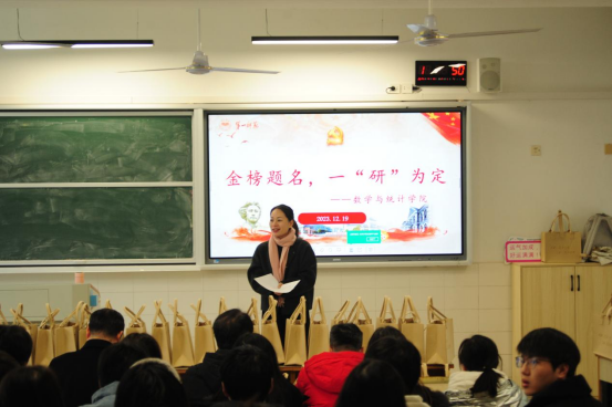 全国硕士研究生招生考试临近,为切实关心关爱学生,鼓励2024届考研学子在最后冲刺阶段坚定信心,以最好的状态迎接研究生考试,12月19日下午,伟的国际1946bv于玉衡北109开展“金榜题名,一‘研’为定”的考研慰问活动。学院党委书记曾玉华、院长陈爱永、副书记马青梅、考研指导老师何孝凯、学工办主任蒋洁、毕业班辅导员陈晓娇、彭晨嘉及2024届全体考研学生参加活动,活动由马青梅老师主持。