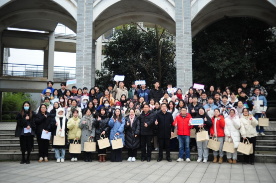活动的最后,学院领导和老师们为同学们送上学院精心准备的“金榜题名”考研大礼包,并合影留念。代表“一帆风顺”祝福的数统院定制帆布袋中装满暖心且极富特殊寓意的慰问品,包括手写的加油书签、暖宝宝、可口可乐、口罩和“面试包过”面包,饱含了学院对考研学子们浓浓的关爱和殷切的期盼,希望同学们“研”途璀璨,蟾宫折桂!