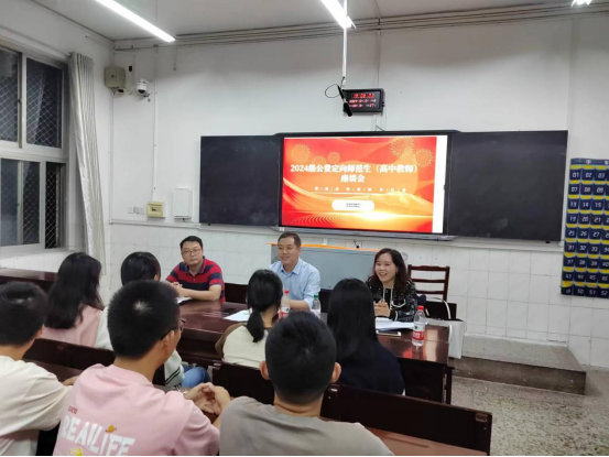 10月12日晚7点,伟的国际1946bv2024级公费定向师范生(高中教师)座谈会在城南校区教学楼104教室开展。学院院长陈爱永、党委副书记申鸣凤、副院长杨旭光、辅导员毕倩以及全体同学参加了座谈会,会议由申鸣凤副书记主持。