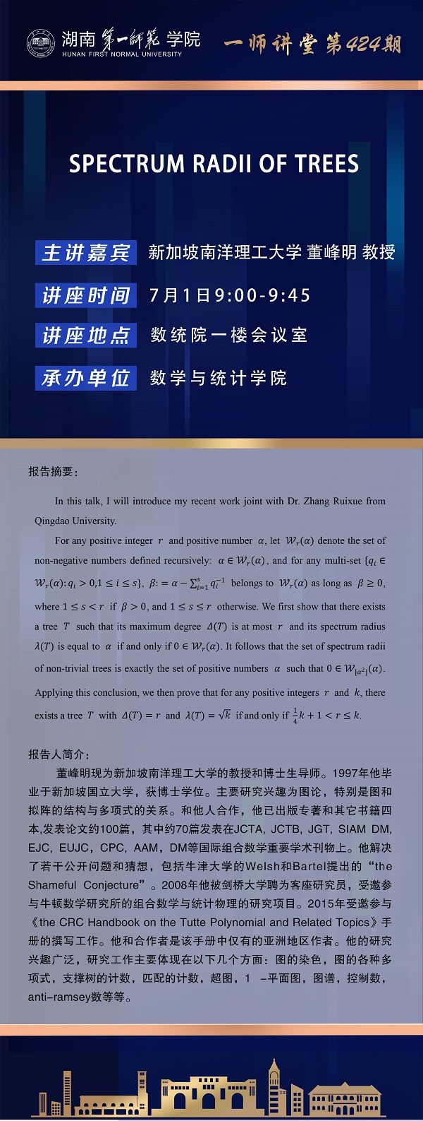 学术报告|数学高峰讲坛第68期:Spectrum radii of trees