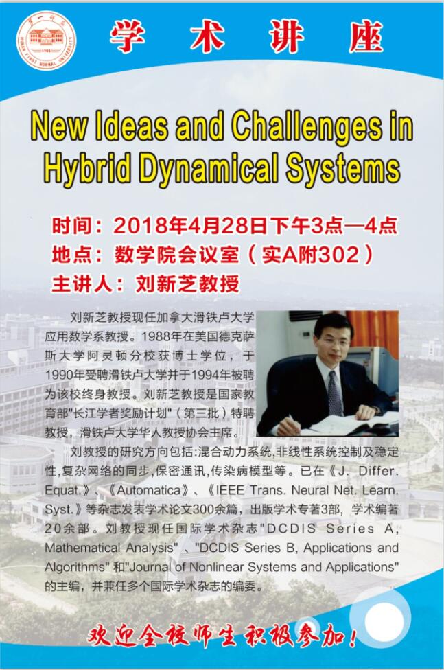 4月28日加拿大滑铁卢大学刘新芝教授到我校讲学