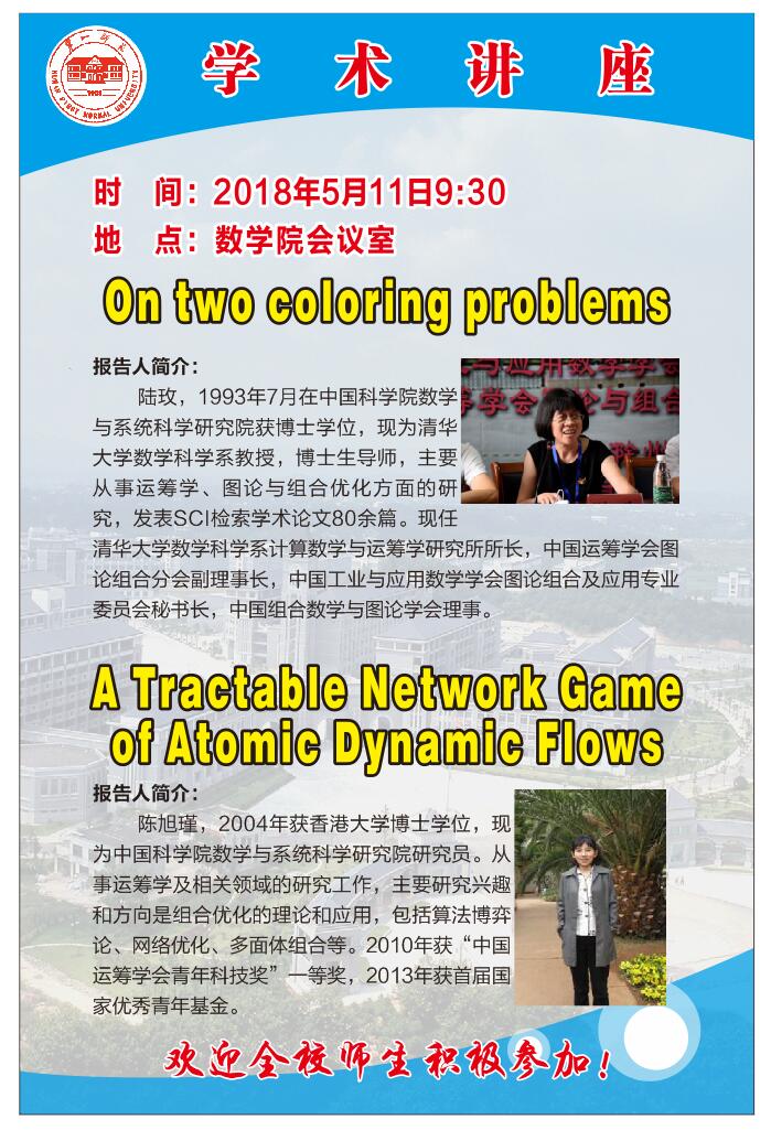 5月11日清华大学陆玫教授、中国科学院陈旭瑾研究员到我校讲学