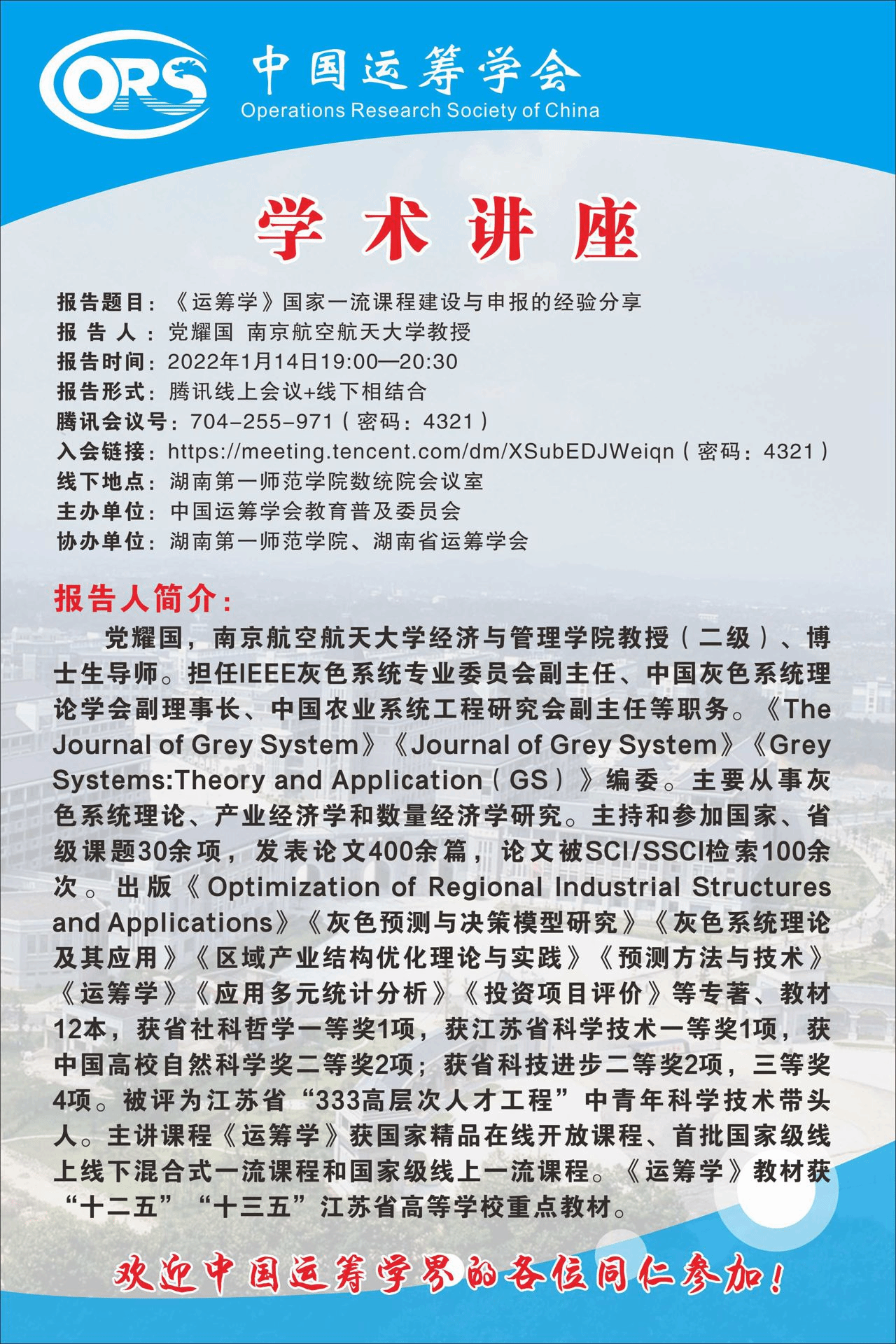 学术报告:《运筹学》国家一流课程建设与申报的经验分享