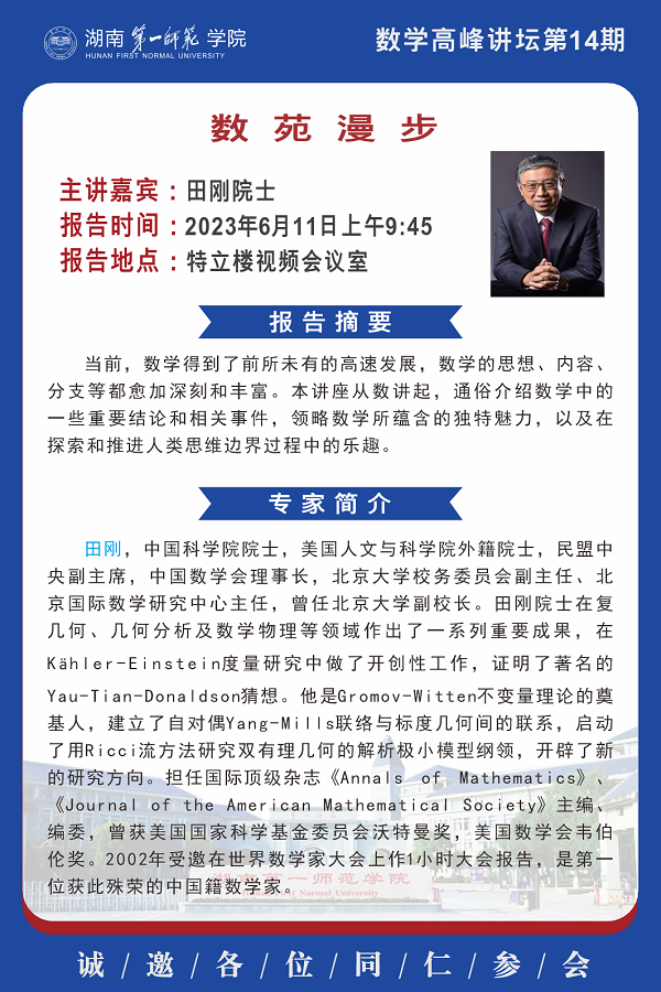 学术报告|数学高峰讲坛第14期:数苑漫步