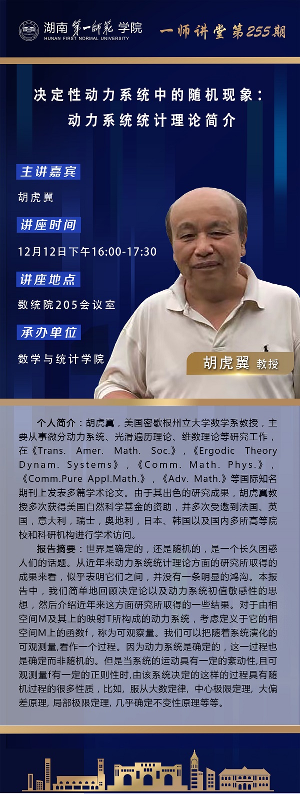 学术报告|数学高峰讲坛第30期:决定性动力系统中的随机现象:动力系统若干问题新进展