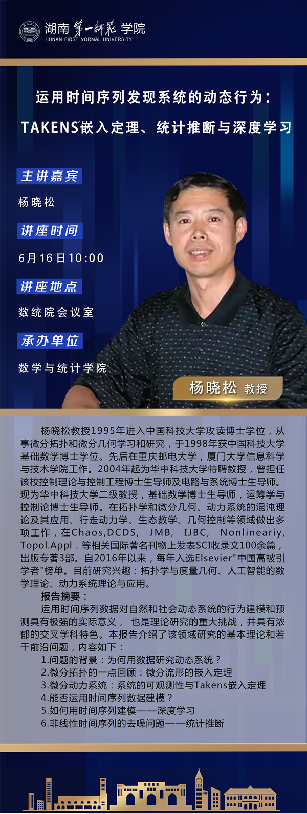学术报告|数学高峰讲坛第43期:运用时间序列发现系统的动态行为:Takens' 嵌入定理、统计推断与深度学习