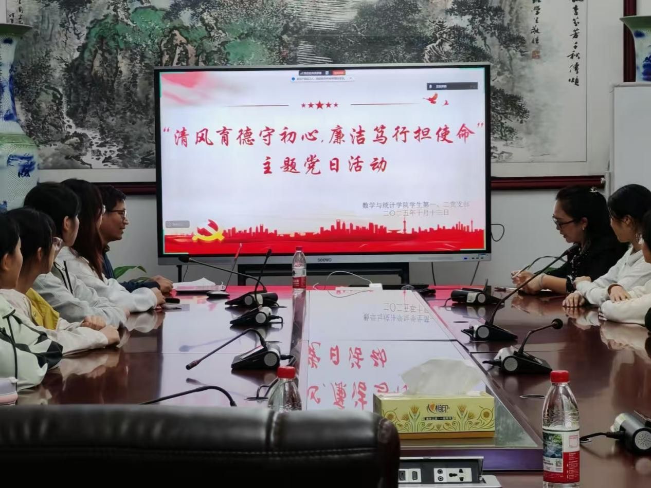 2025年10月14日下午,秋风送爽,清气盈怀。伟的国际1946bv学生第一、第二党支部齐聚一堂,成功举办“清风育德守初心,廉洁笃行担使命”专题党课活动。本次党课由学生党支部书记毕倩主持,特邀学院党委书记阮东彪担任主讲,学院全体党员、预备党员、支部委员及助理干事共同参与学习。