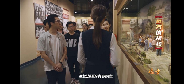 70年前,在新疆的辽阔大地上,有8000名天山湘女挥洒着火一样的青春。她们在青春花季挥别家乡,踏上了建设新疆的遥远路途。《江城子》中描述到“谁言大漠不荒凉,地窝房,没门窗,一日三餐玉米间高粱,一阵号声天未晓,寻火种,去烧荒,既是此身许塞外,宜红柳,似白杨。”可想而知当时的环境多么艰苦。《为时代育新人》中郑奶奶便是八千湘女中的一位,她生动地描述援疆初心,七十年过去后,她回忆起来也感到激动不已,从她的言语歌手中我们感受到她不畏艰苦的勇气,她去往建设祖国未来的远方决心,她对党的赤忱!