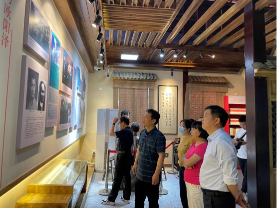 下一站走进周立波故居纪念馆,大家认真参观了珍贵的历史实物、手稿和图片资料,详细了解周立波以笔为枪,讴歌革命的事迹。周立波从青年时代就追随真理,矢志不移,树立了崇高的理想信念,时刻听从党召唤,把自己毕生的精力都献给了无产阶级的解放事业。周立波忠于党,忠于人民,求真务实、清正廉洁、不畏艰难,不怕牺牲敢于战胜一切困难的革命精神深深感染每位党员。