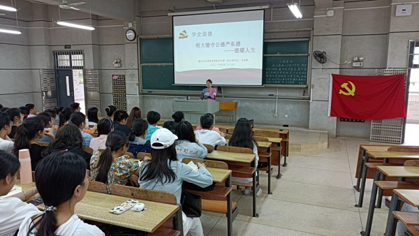 随后,学生第一党支部书记马青梅老师为学生党员上了“明大德、守公德、严私德——德耀人生”专题党课,分别从明大德、守公德、严私德三个方面告诉学生党员,要做到对党忠诚、为民造福和严于律己,做一名无私奉献的优秀党员。