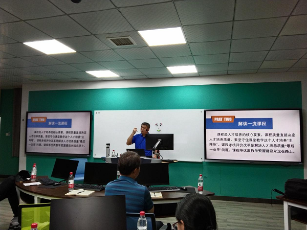 随后,银海强进行一流课程建设申报的培训。他从一流课程的重要性,对一流本科课程的认识,一流本科课程建设的政策与形势,一流本科课程“建设内容”,以及国家一流本科课程申报的要求和方法等多个方面对一流本科课程建设进行了全面深入的分析和阐释。