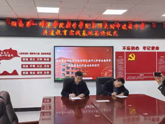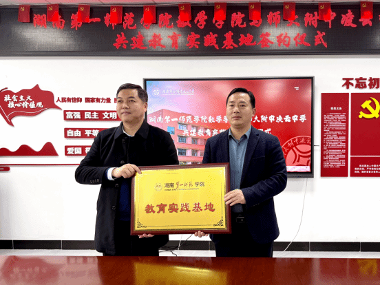 在与会领导和嘉宾的共同见证下,陈爱永与陈光辉正式签订了教育实践基地协议书,举行了隆重的授牌仪式。此次签约授牌仪式的成功举办,标志着我院与长沙高新区师大附中凌云中学的友好合作开启了崭新篇章,迈上了新的台阶。