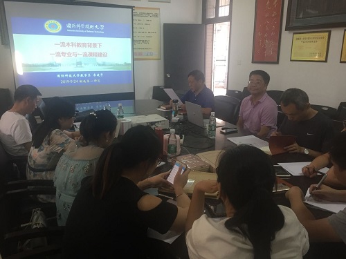 9月24日下午,国防科技大学李建平教授应邀来我院指导教学质量工程建设工作,在玉衡北302室举办了一场题为“一流本科教育背景下的一流专业与一流课程建设”的精彩报告。学院领导欧阳章东、曾玉华、肖建华以及部分教师30余人参加了会议,会议由肖建华副院长主持。