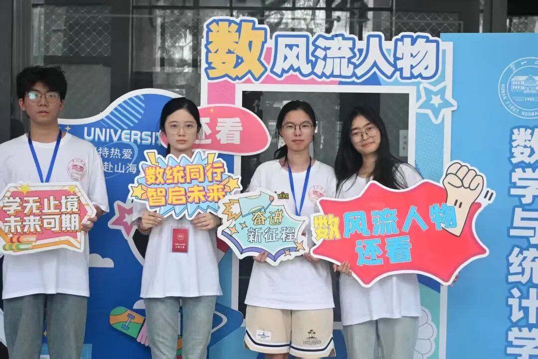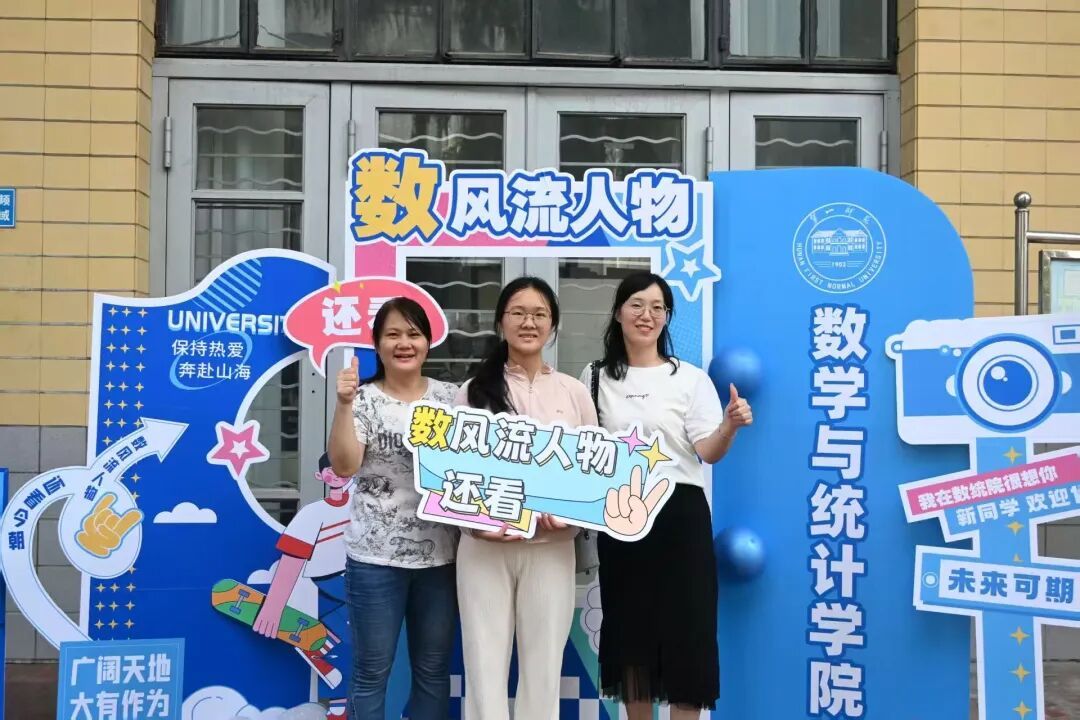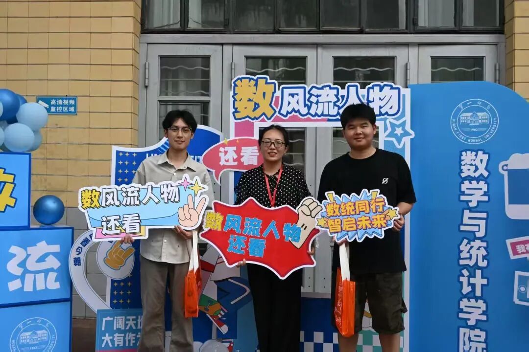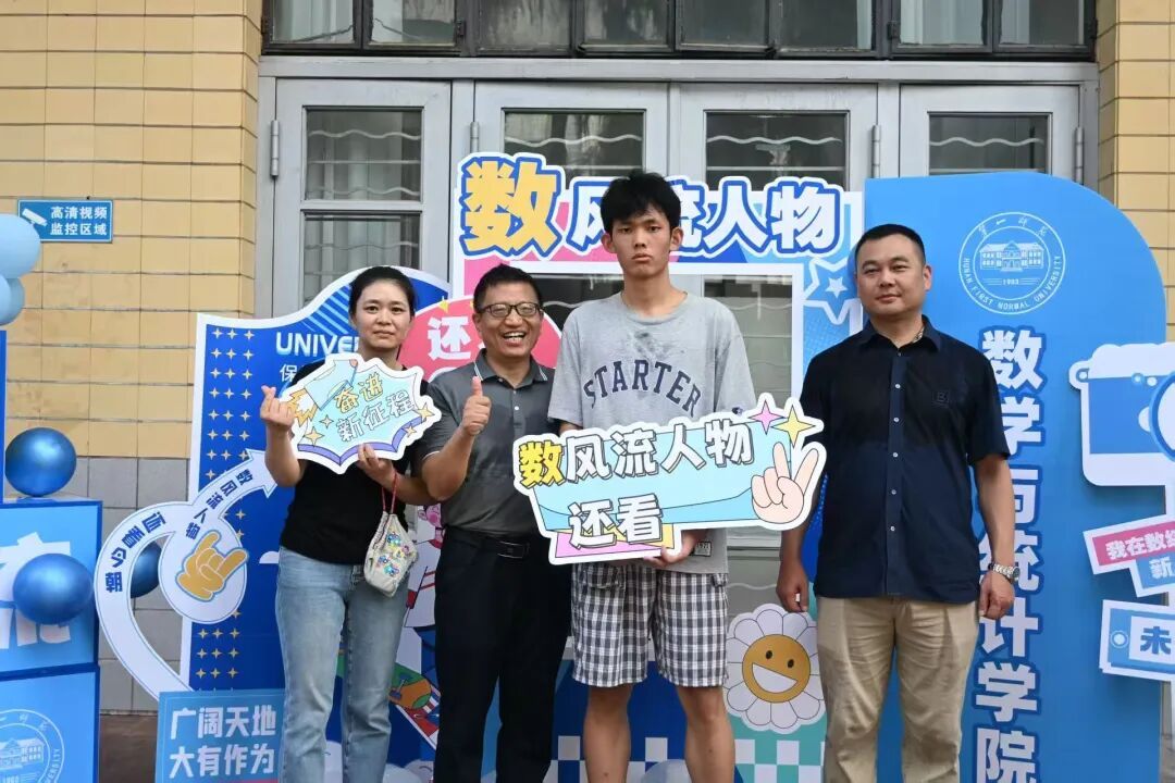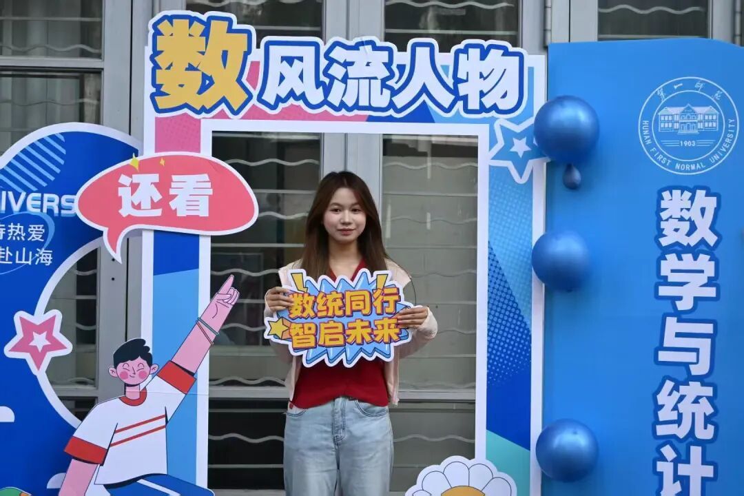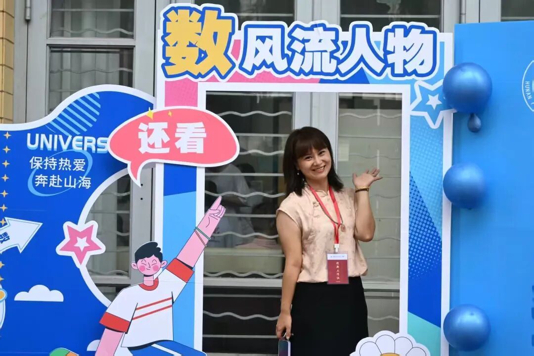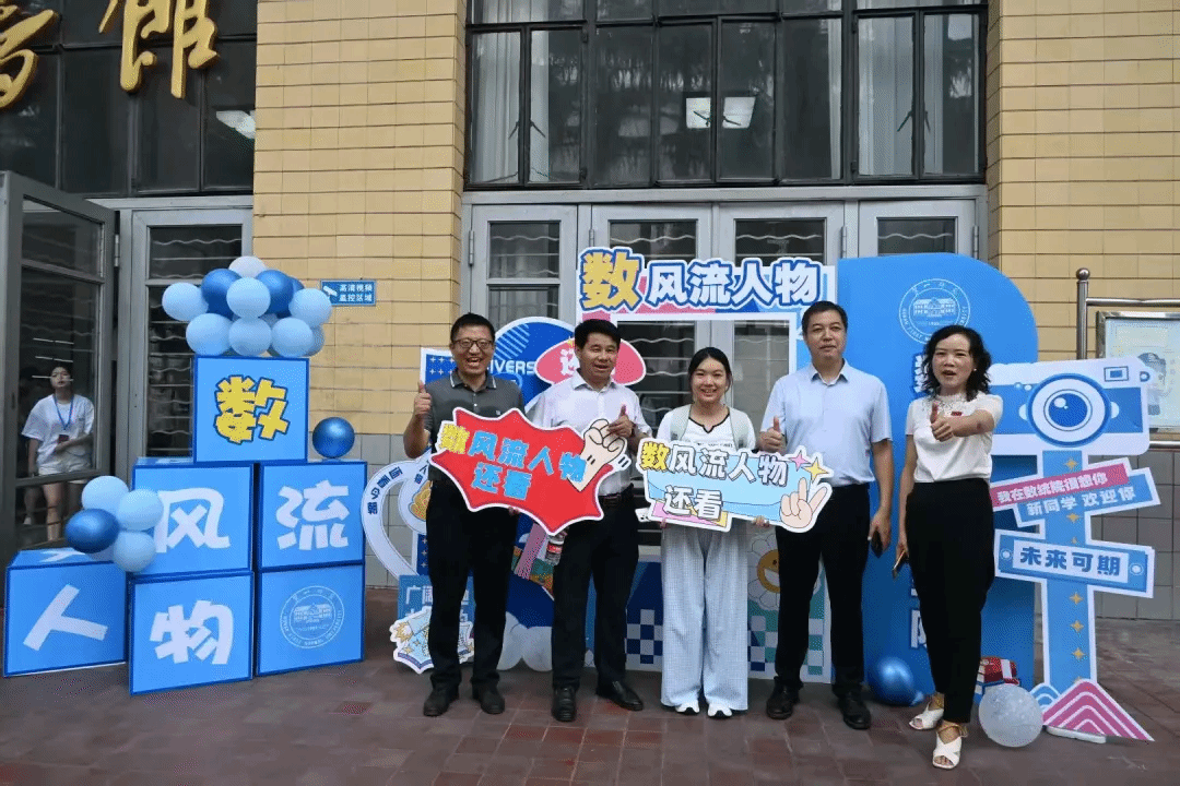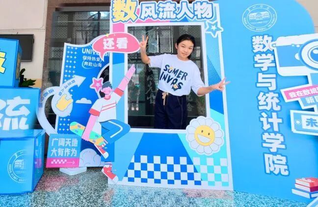 “数・风流人物”迎新活动巧妙融合毛主席诗词与数学元素,打造了特色主题打卡区。现场设有趣味手牌,吸引新生、家长驻足互动,领导、志愿者也纷纷加入合影行列,与新生共同记录入学美好瞬间。