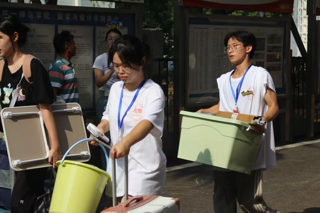 数统院志愿者穿梭各处,搬行李、指路线、解疑惑,用行动织就暖心风景线。