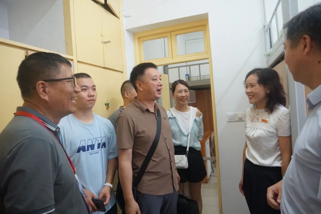 校领导亲切慰问迎新一线,详细了解我院特色品牌活动。学院领导走遍迎新点,查流程、看宿舍,询问新生与家长需求,用细节化解陌生感。