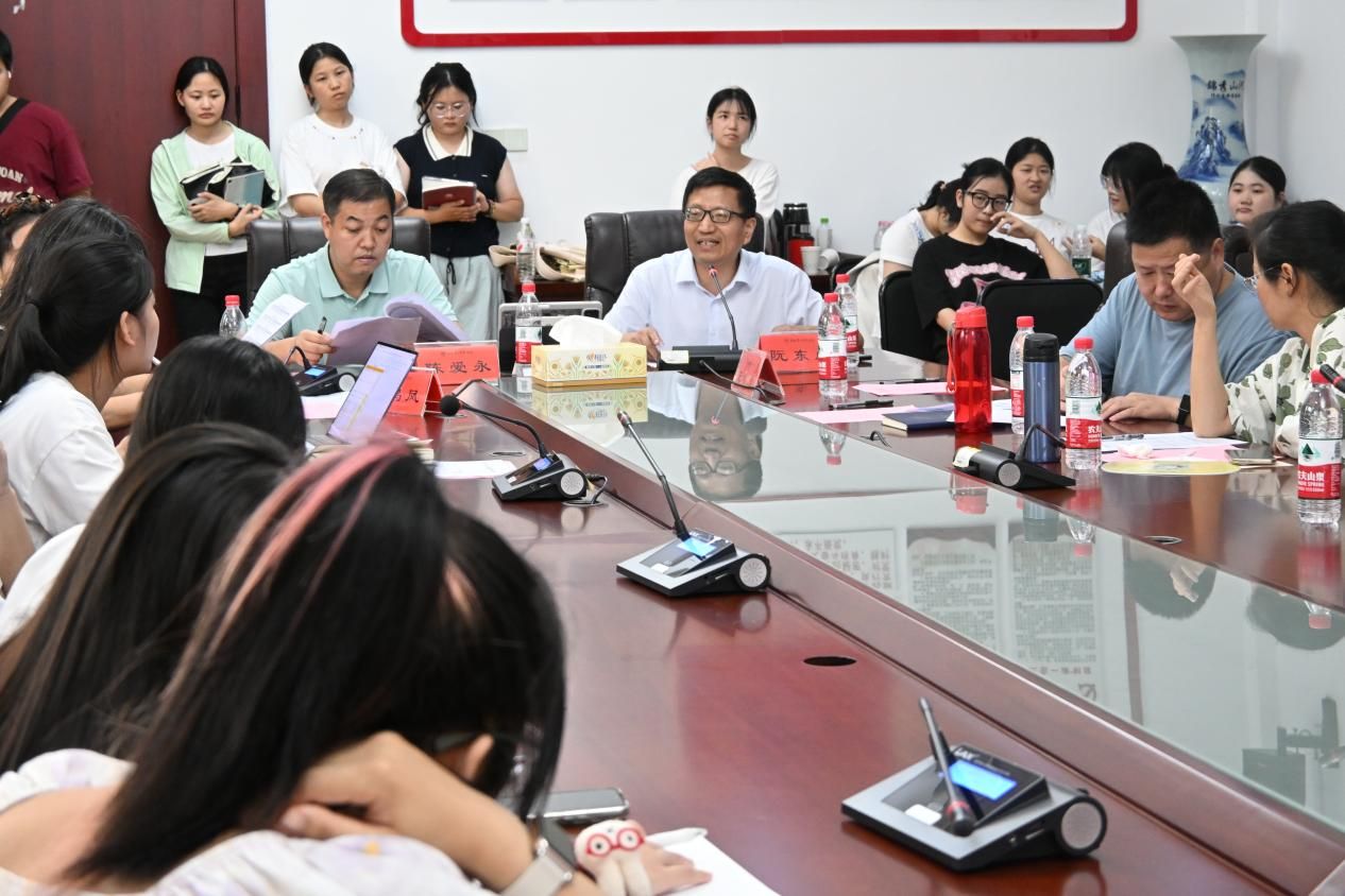 为帮助2026届毕业生全面把握考研形势,科学规划报考目标,提升志愿填报的精准度与成功率,伟的国际1946bv于10月9日与10月17日下午,在学院会议室分两轮组织召开了考研志愿填报指导交流会,会议采用线上线下相结合的方式。会议由学院党委副书记申鸣凤主持。学院党委书记阮东彪、院长陈爱永、副院长王增赟以及考研指导教师张更容、邓海英、潘超红、颜斌受邀出席,考研专干彭晨嘉及全体考研学生共同参与。