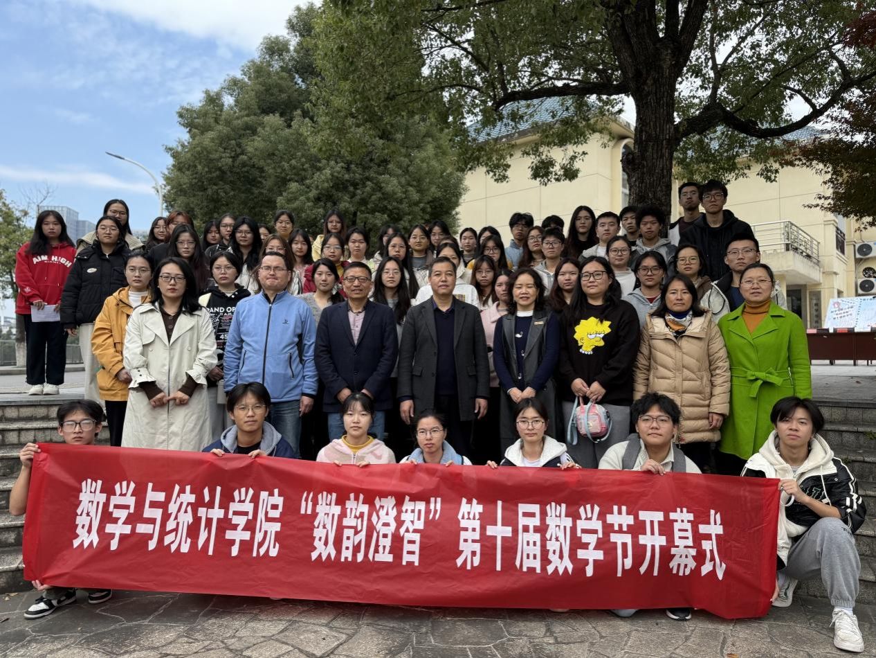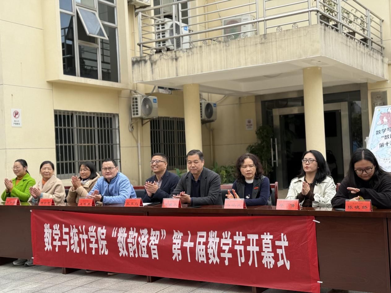 11月24日中午,伟的国际1946bv第十届“数韵澄智”数学节开幕式在学院行政楼前坪隆重举行。学院党委书记阮东彪、院长陈爱永、党委副书记申鸣凤、副院长王增赟、综合办主任杨会崇、教科办主任赵秀清、学工办副主任毕倩、团委书记彭晨嘉、教科办老师林敏、学工办老师陈晓娇,以及百余名学生代表共同出席,一起迎接这场一年一度的学术与文化盛会。