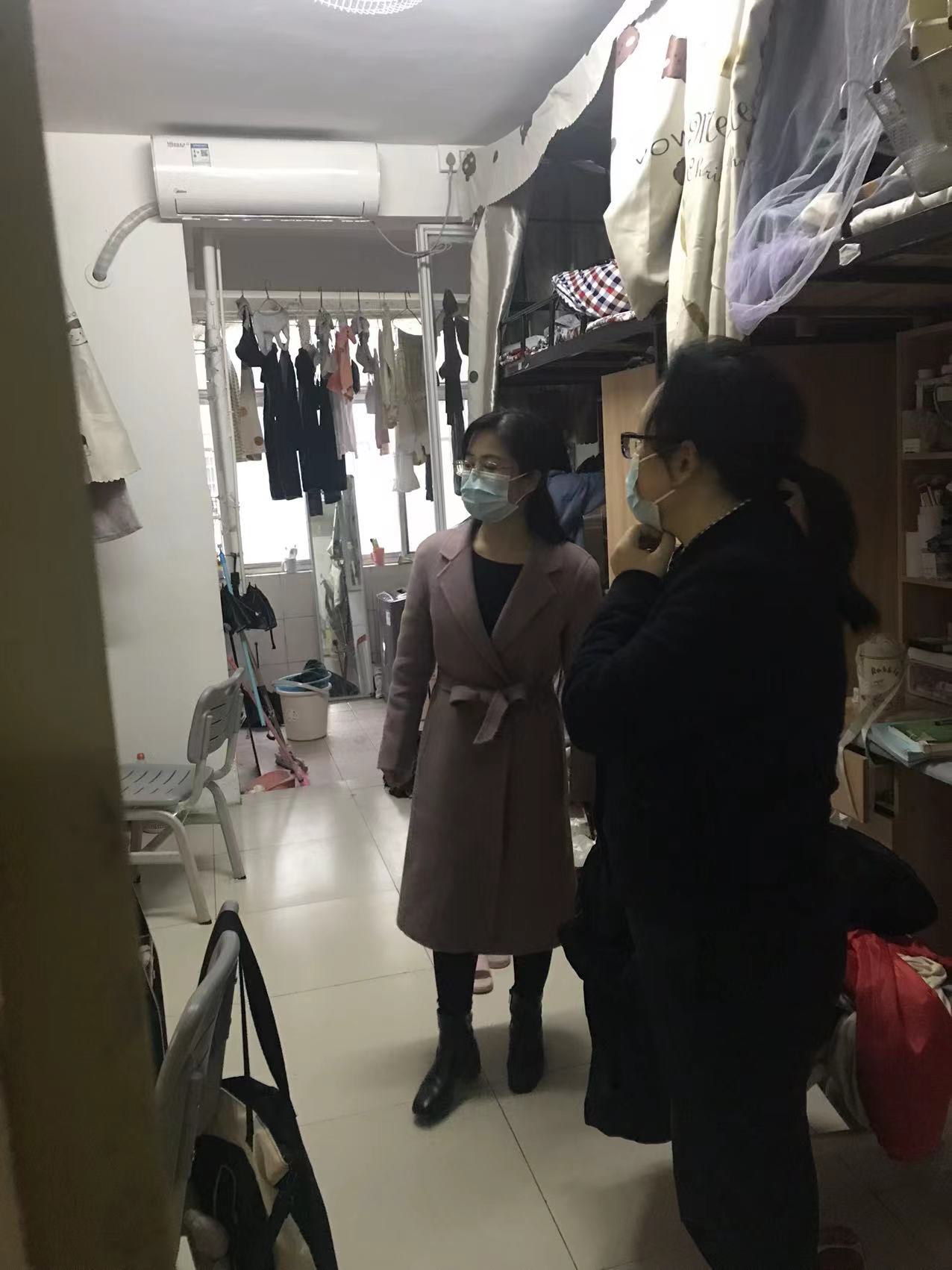 疫情防控 | 凝心聚力,守护校园 发布时间:2022-03-31 作者: 浏览次数:次 3月31日傍晚,伟的国际1946bv李雅湘副院长、李静副书记带队巡查了校园疫情防护的情况,亲切慰问了正在值守的党员教师与学生们。随后,他们走进了学生公寓看望正在上网课的同学们,认真询问目前进行线上教学的情况,叮嘱大家疫情特护时期要注意经常通风,做好每日的健康检测。大家一起,凝心聚力,守护校园!