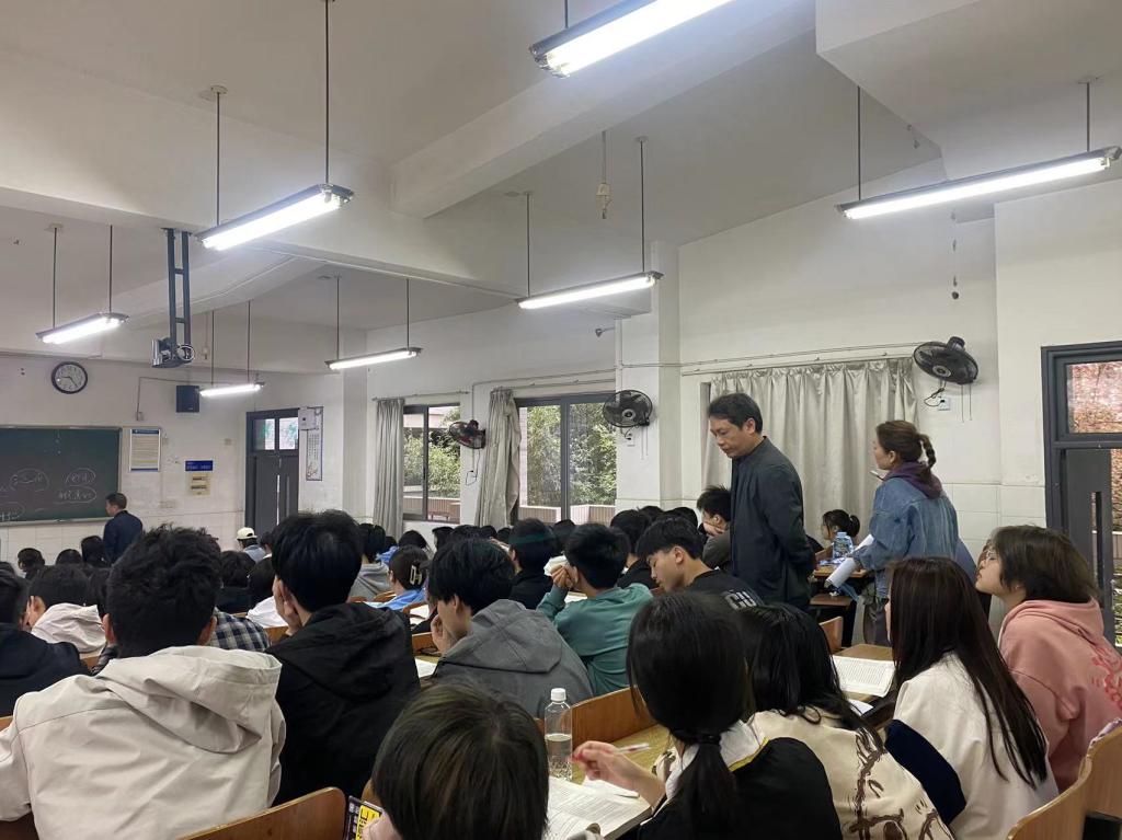 书记查课 | 落实优良学风建设 发布时间:2022-03-17 作者:吉先菊 浏览次数:次 今天上午,我院党委书记曾玉华带领值班辅导员进行课堂情况线下巡查,通过思想引领正学风、制度保障治学风、环境营造促学风等长效、长期、常态化措施,落实优良学风建设,切实增强学生真学真信、苦学苦干的责任感。