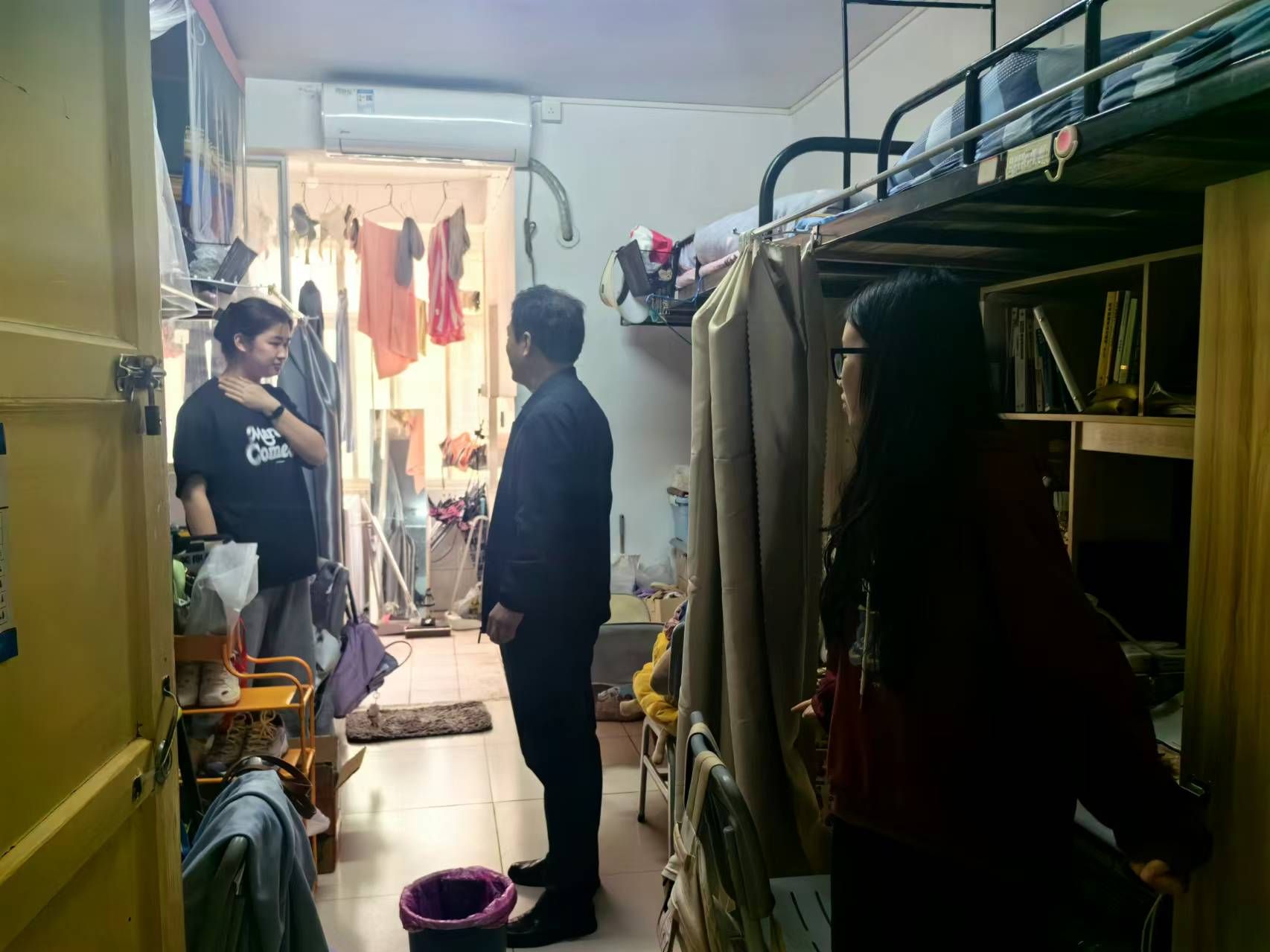书记下寝 | 聚焦学习生活,排查安全隐患,数统学院宿舍走访进行时 发布时间:2024-10-18 作者: 浏览次数:次 10月18日下午,伟的国际1946bv党委书记曾玉华带领辅导员到学生宿舍了解学生学习生活情况,对学生寝室内务卫生等进行了检查和相关安全隐患排查。