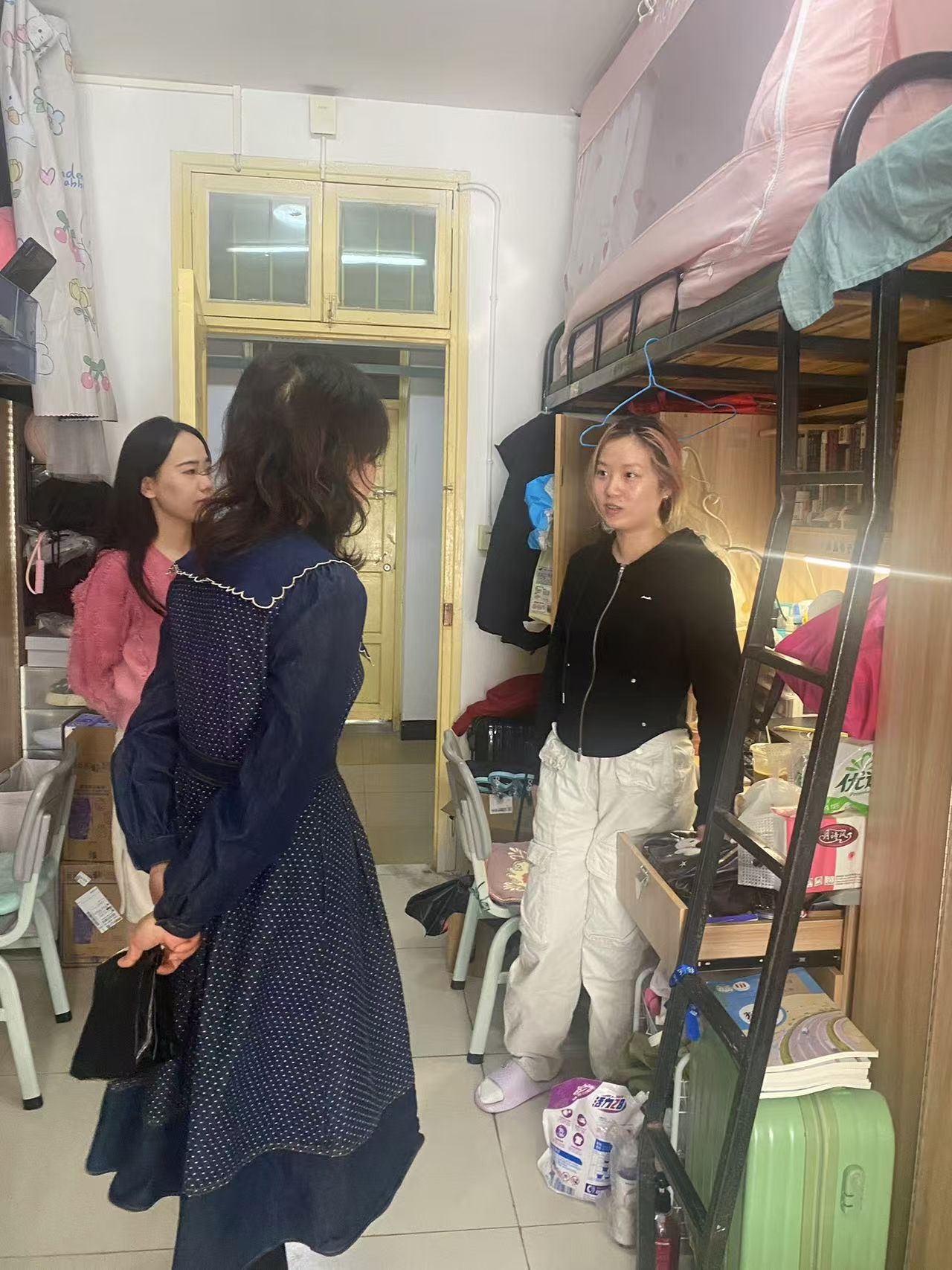 书记下寝 | 点赞学子学习,促劳逸结合 发布时间:2024-11-08 作者: 浏览次数:次 11月8日下午,伟的国际1946bv党委副书记申鸣凤带领全体辅导员走进3栋寝室,关心同学们的学习和生活情况,对同学们的学习态度提出了表扬,叮嘱同学们学习要劳逸结合,注重效率;保持寝室干净卫生,营造良好学习生活环境。