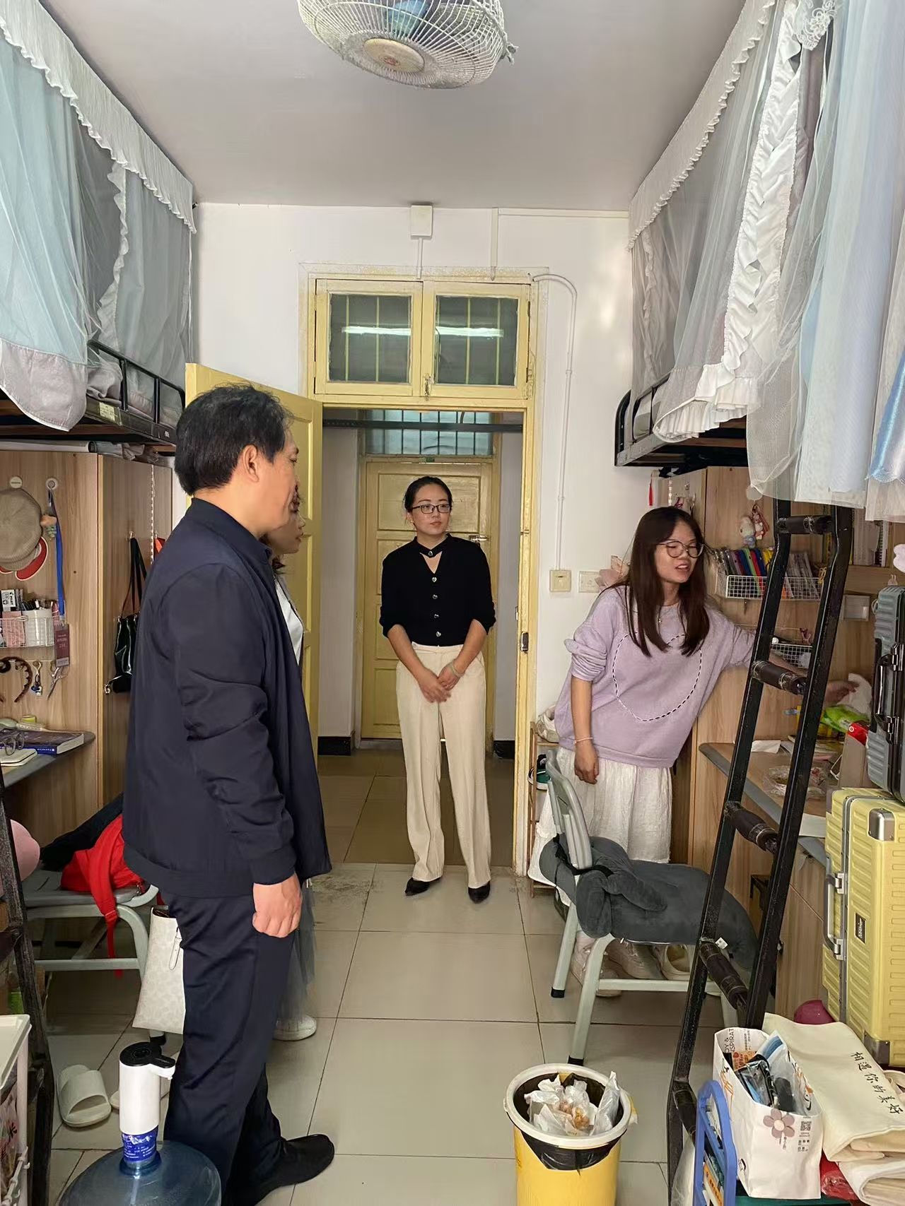 书记下寝 | 细察卫生安全,激励学子共进 发布时间:2024-11-15 作者: 浏览次数:次 11月15日下午,伟的国际1946bv党委书记曾玉华、副书记申鸣凤带领辅导员到4栋学生宿舍进行卫生和安全检查,督促同学们每天注意通风透气,保持宿舍干净整洁,美化学习生活环境,曾书记、申书记与同学们进行了细致的交流,了解平时的学习以及实践活动情况,鼓励同学们互相学习互相促进共同发展。