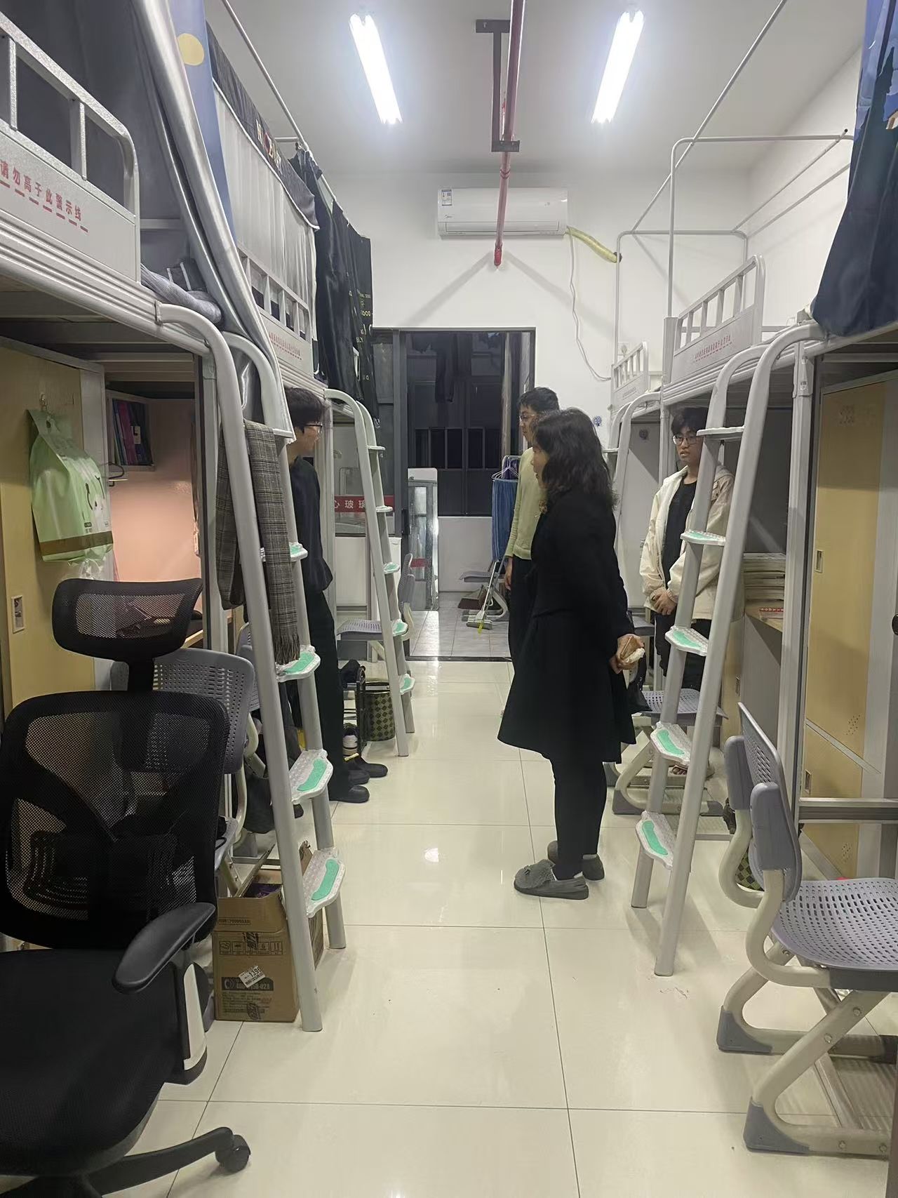 书记下寝 | 查安问卫,助力考研梦 发布时间:2024-12-02 作者: 浏览次数:次 12月2日晚,伟的国际1946bv党委副书记申鸣凤带领辅导员下17栋寝室检查寝室安全和卫生情况;告知同学们注意寝室卫生,杜绝安全隐患,并前往玉衡北305、润寰南505及图书馆看望我院考研同学,与考研同学交流考研经验,并鼓励同学们在最后的冲刺阶段继续加油,不要泄气,努力实现考研梦。
