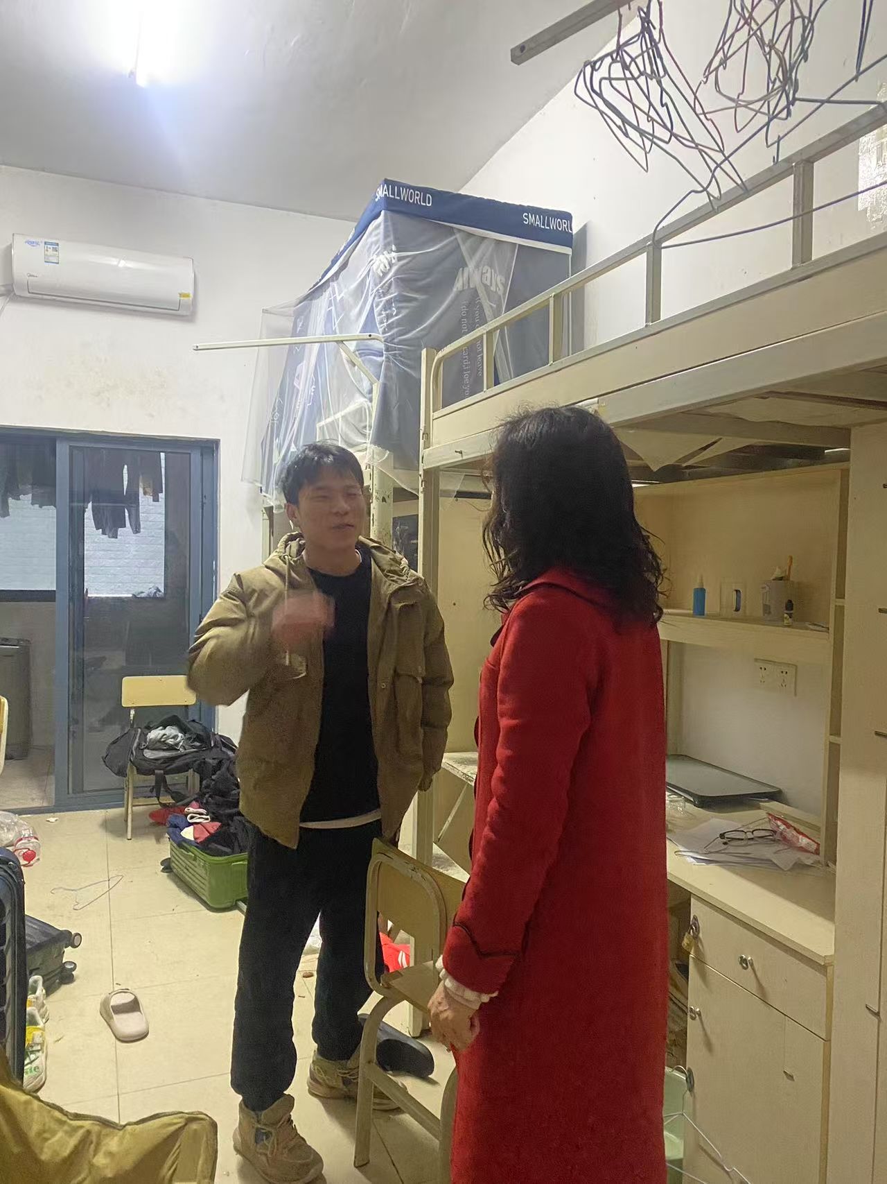 书记下寝 | 排查隐患保清洁:为新学期宿舍生活“上保险” 发布时间:2025-02-16 作者: 浏览次数:次 2月16日,伟的国际1946bv副书记申鸣凤带领全体辅导员进行安全大检查,对宿舍的水电设施、门窗状况等进行了逐一排查,不放过任何一个安全隐患。同时,还仔细检查了宿舍卫生情况,确保同学们能在干净整洁的环境中开启新学期。此次检查不仅为了排除安全隐患,更是为同学们的新学期生活的保驾护航。