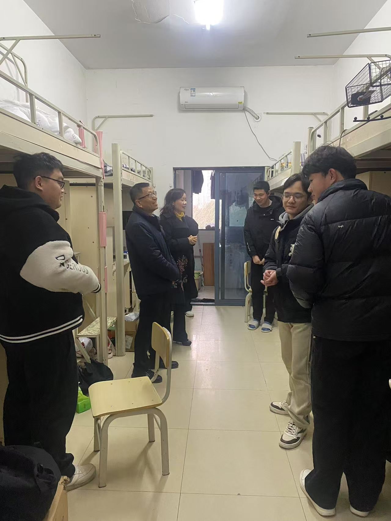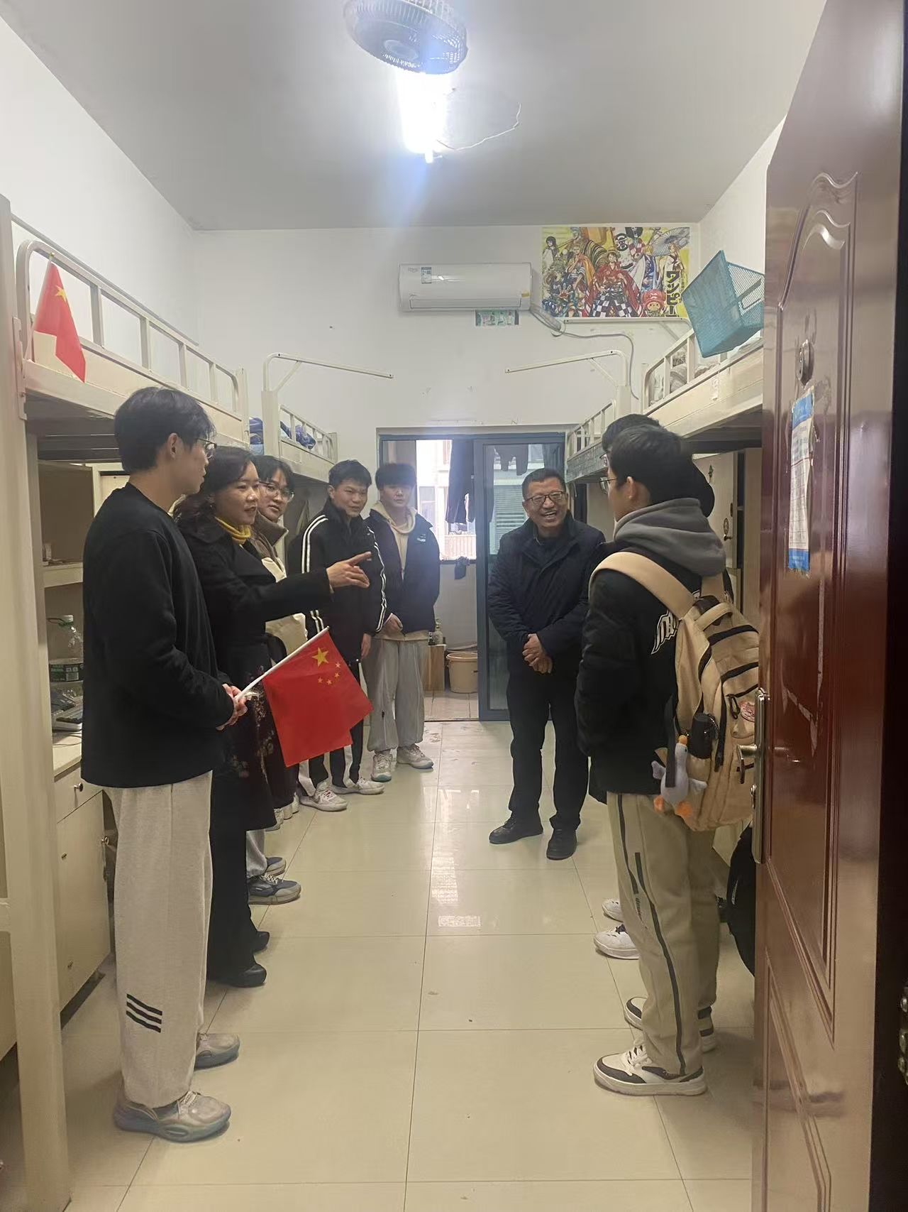 书记下寝 | 抓卫生、查安全,共建舒适安全生活环境 发布时间:2025-03-07 作者: 浏览次数:次 3月7日下午,伟的国际1946bv党委书记阮东彪、副书记申鸣凤带领全体辅导员深入男生宿舍走访,检查过程中,老师们仔细查看了各寝室的整体卫生状况,还重点检查了床铺整理、桌面物品摆放、地面清洁等细节,并对电器设备等进行了逐一排查。针对部分寝室存在的物品摆放杂乱等问题,提出了整改要求;老师们也叮嘱同学们要时刻绷紧安全这根弦,切实提高安全防范意识,养成良好的生活习惯,共同营造安全、整洁、舒适的学习生活环境。