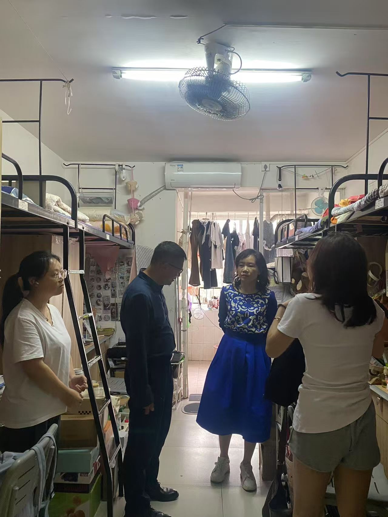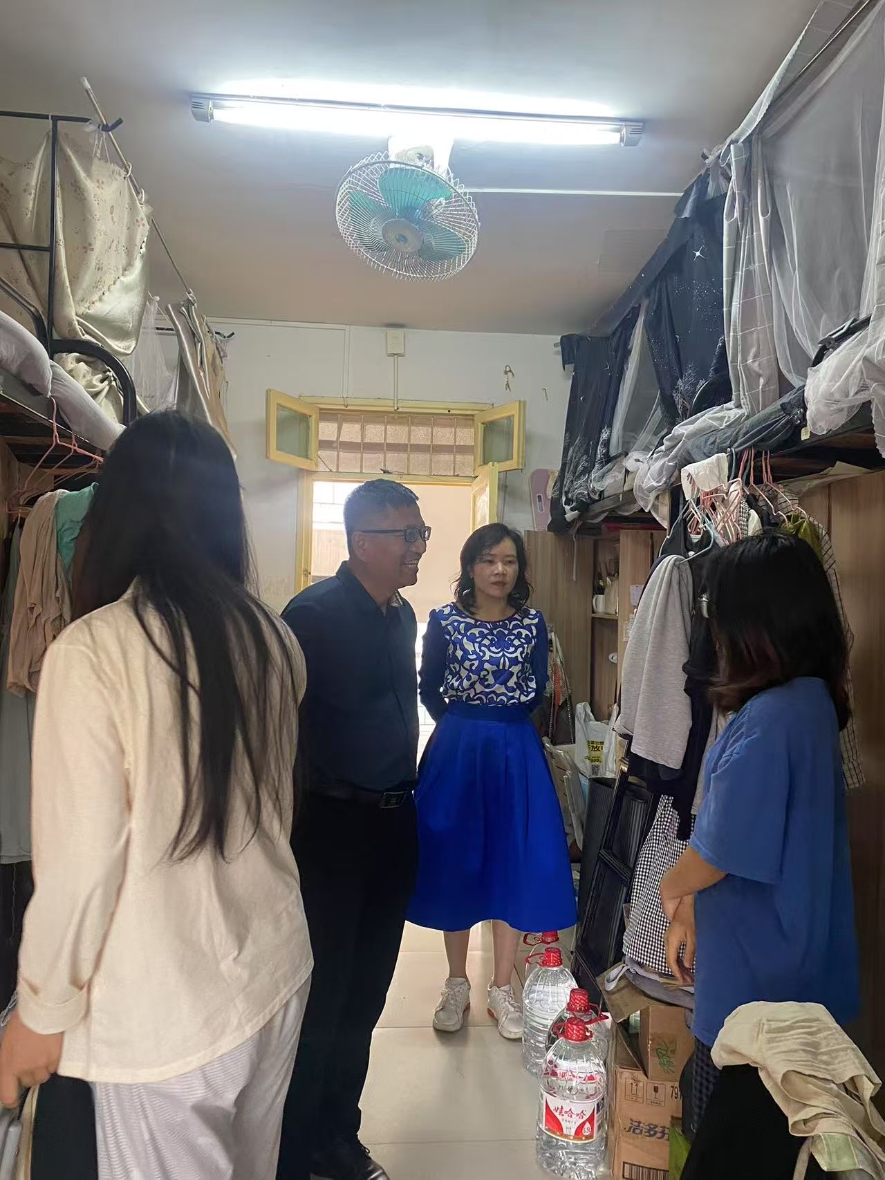 书记下寝 | 数统学院开展五一节前宿舍安全大检查 发布时间:2025-04-30 作者: 浏览次数:次 4月30日下午,伟的国际1946bv党委书记阮东彪、副书记申鸣凤带领辅导员走访3栋学生宿舍,临近五一假期,老师们对宿舍安全问题进行了重点排查。在用电安全方面,仔细检查是否存在违规使用大功率电器的情况,同时重点查看插座线路是否人走电断、有无私拉乱接现象,向学生强调违规用电的危害,要求严格遵守宿舍管理规定,确保无安全隐患遗留。书记们也鼓励大家利用假期适当放松的同时,也不要忘记学习,为下一阶段的学习生活做好准备。