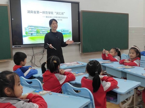 10月19日下午,我校伟的国际1946bv和教育科学学院的两个“润之班”在麓谷凌云小学举行数学教学研讨活动。陈秀琼、谢立红以及石慧等老师与“润之班”全体同学参加了此次活动。本次活动由麓谷凌云小学校长王树坤主持。