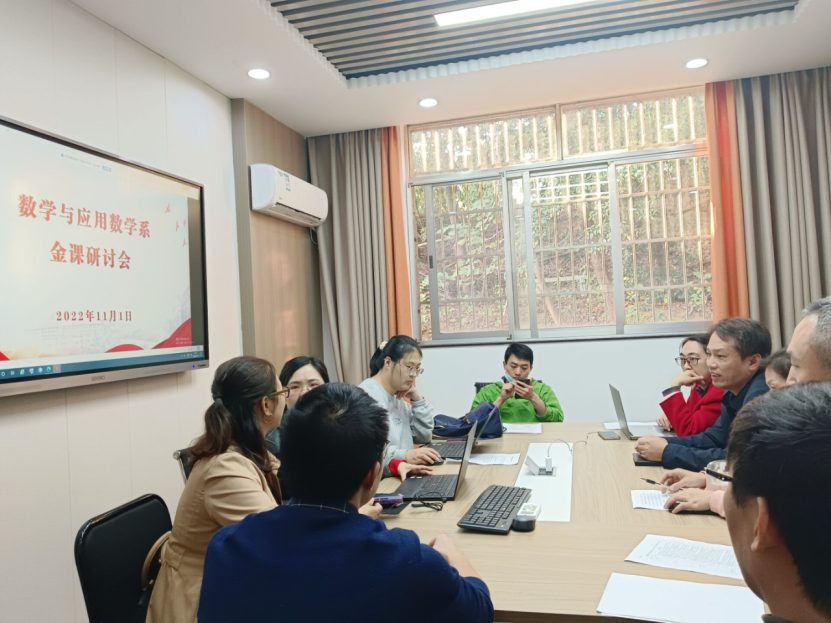 11月1日下午,数学与应用数学系全体教师在数统院办公楼205室开展“两性一度”金课研讨活动。研讨活动由系主任赵清贵主持,学院党委书记曾玉华全程参与。