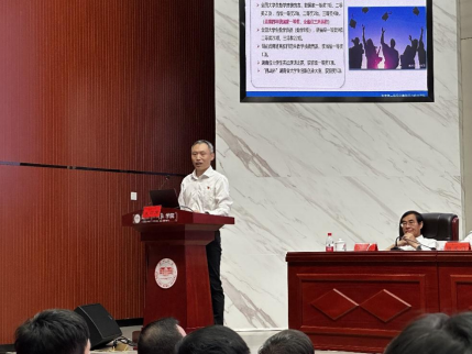 数学与应用数学系党支部书记赵清贵作为受表彰代表作典型发言。他的发言主要从五个方面介绍支部党建工作:一是以理论学习为横坐标,建设学习型支部。二是以专业能力为纵坐标,建设业务型支部。三是以先锋模范为弧线,激励党员对标争先。四是以党建融合为射线,发挥战斗堡垒作用。五是以学生发展为中心,助力学生成长成才。赵清表示,数学与应用数学系党支部长期以来,积极探索建设“学习型”“业务型”党支部,将党建与业务深度融合,充分发挥党员先锋模范和支部战斗堡垒作用,打造“两标两线一中心”的标杆支部,努力为我院“四个走在前”建设做出应有贡献。