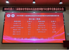 本次竞赛由湖南省教育厅主办,湖南省高等教育学会教育技术专业委员会、湘南学院承办,分文科组、理工组、实践组展开角逐,旨在全面提升普通本科高校教师的数字化教学水平和数字技术应用能力。大赛分为校级初赛、省级复赛和现场决赛三个阶段,前后历时半年之久。经过校级初赛,全省各高校共推荐200多个优秀教学团队进入复赛,经网络评审后共有60个优秀教学团队晋级决赛,我校参加复赛的教师中仅有郭佳进入决赛。决赛现场抽取竞赛顺序和知识点,参赛教师须在12分钟内完成数字化课程建设、教学成效介绍和对随机抽取的教学内容进行课堂展示。经过现场决赛,全省共27名教师获得一等奖(理工组仅11人)。